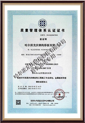 龍慶鋼構彩板有限公司 目前擁有鋼結構制造一級、鋼結構承包一級、施工總承包二級、ISO9001質量體系認證、信用等級AAA級企業。公司總占地30萬平米,在職員工1000余人,同時擁有重鋼、輕鋼生產基地5個,年產值20萬噸。主要涉及有:鋼結構系列、彩鋼壓型板系列、彩鋼夾芯板系列、組合樓板系列等工程配套產品。廣泛應用于:工業廠房、體育場館、高鐵站房、機場航站樓、超高層、畜牧行業、乳品行業、倉儲冷鏈物流、石油化工、醫藥、食品加工行業、橋梁、物流等等。